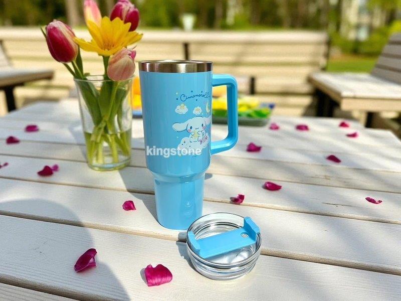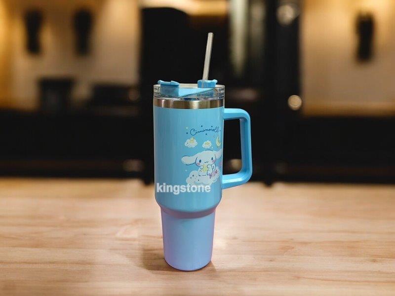 SANRIO【夢想大耳狗】不鏽鋼手把吸管杯1200ml,藍色不鏽鋼印有超卡哇伊的大耳狗圖案.