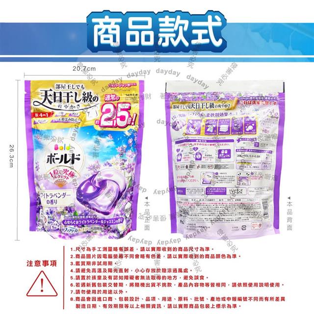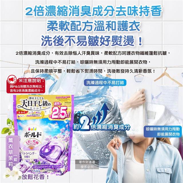 日本P&G-Bold強洗淨4合1消臭柔軟香氛洗衣凝膠球27顆/袋-薰衣草茉莉(紫)(室內晾曬洗衣球補充包/祛黃潔白濃縮洗衣膠囊/1粒究極全機型適用)