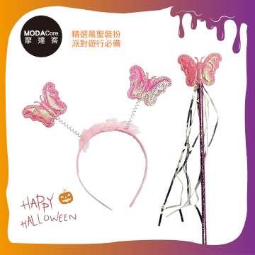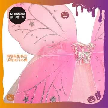 摩達客萬聖★Cosplay派對裝扮變裝★兒童蝴蝶翅膀紗裙四件組-粉色 翅膀/紗裙/髮箍/手杖