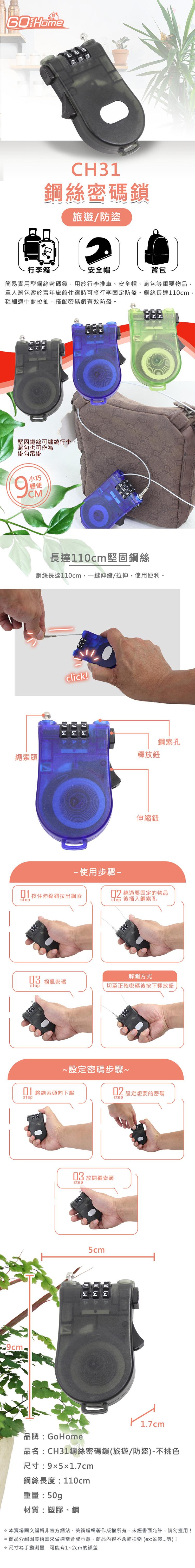 GoHome CH31鋼絲密碼鎖(旅遊/防盜)-不挑色