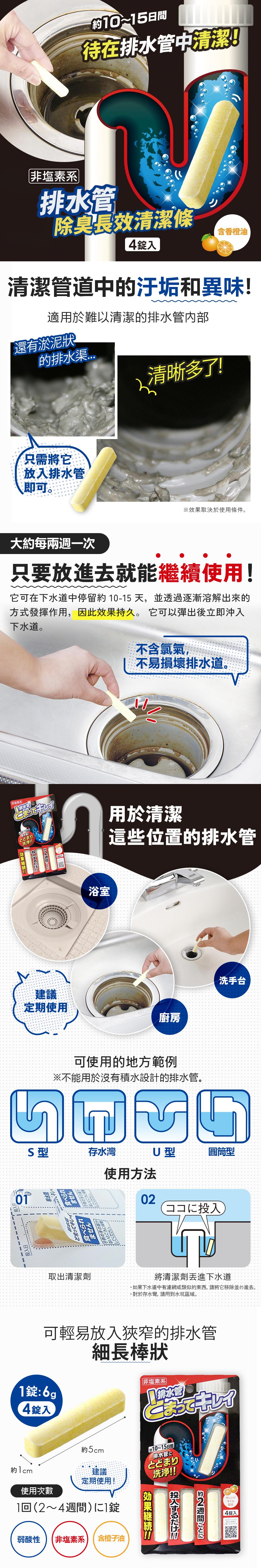 AIMEDIA排水管去污除臭長效清潔條:清新橘子香,讓你的排水管保持清潔!
