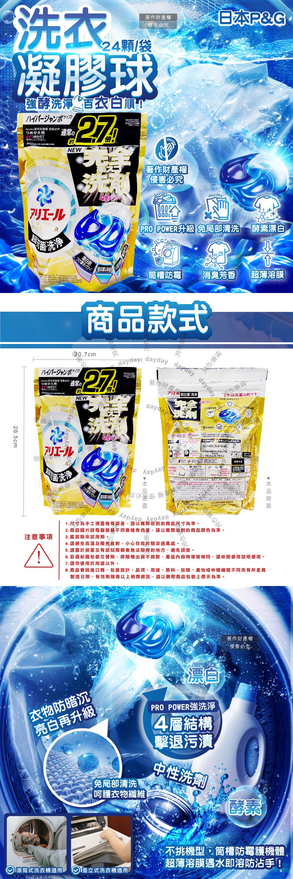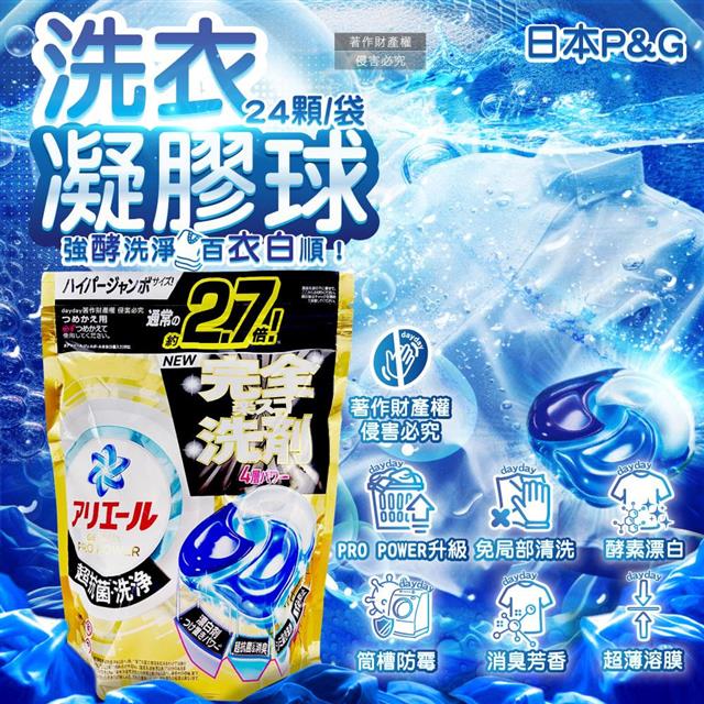 ●品名:Ariel PRO POWER酵素漂白去污強洗淨力洗衣凝膠球