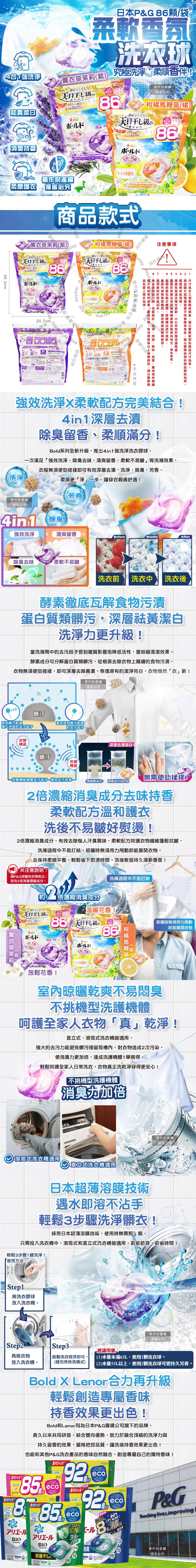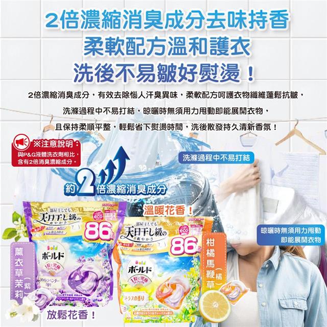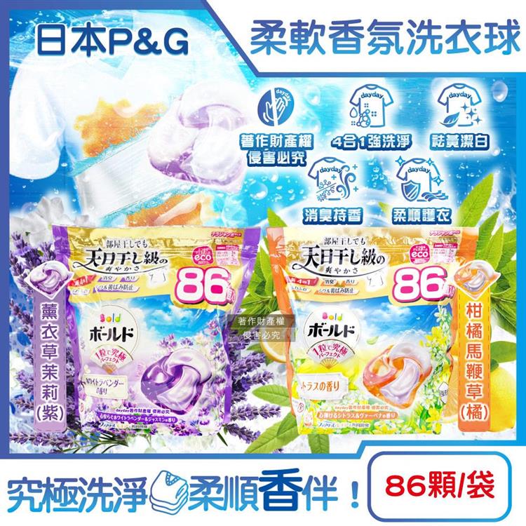 日本P&G-Bold強洗淨4合1消臭柔軟香氛洗衣凝膠球86顆/1袋(室內晾曬洗衣球補充包/祛黃潔白洗衣膠囊/柔順防起皺好熨燙/1粒究極全機型適用)