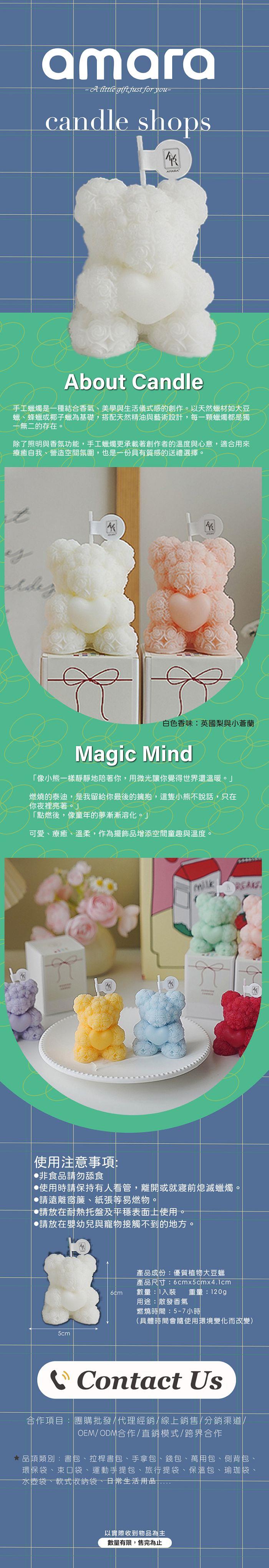 AMARA 心靈熊系列蠟燭-棉花熊(英國梨與小蒼蘭)