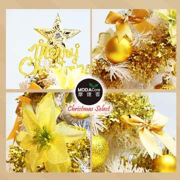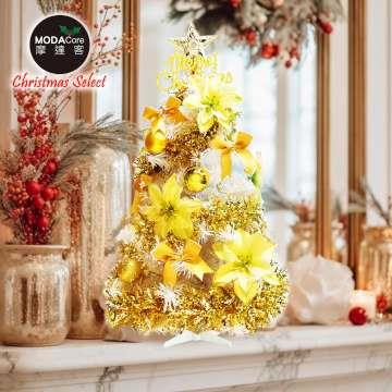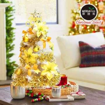 摩達客 台灣製2尺(60cm)精緻白色聖誕樹+富貴雙金聖誕花系飾品組/不含燈/本島免運費MIT歐美外銷人氣款