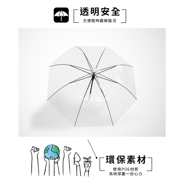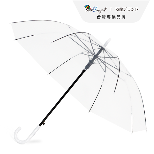 【雙龍牌】 超大傘面日系透明傘 玻纖防風直傘雨傘(自動直立傘環保傘A5873)
