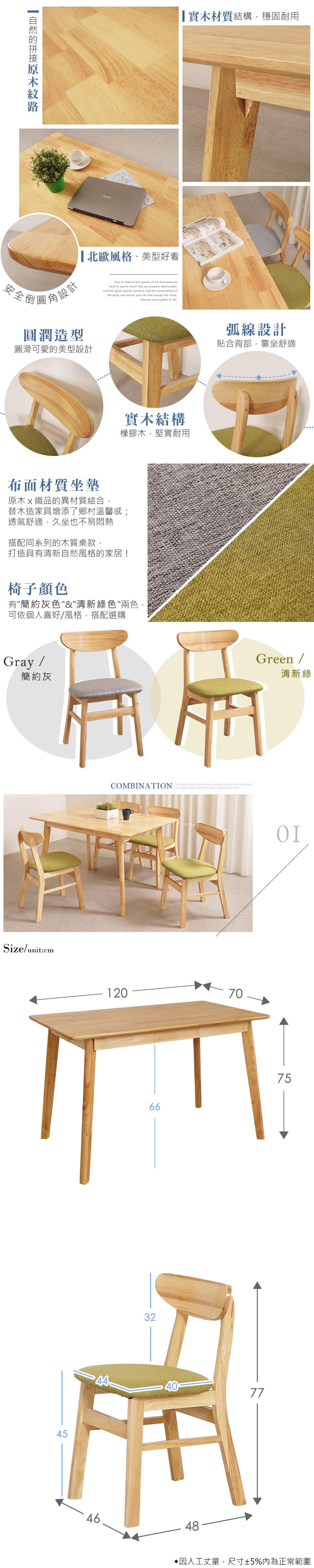 顏色:桌子-原木色、椅子-灰色/綠色