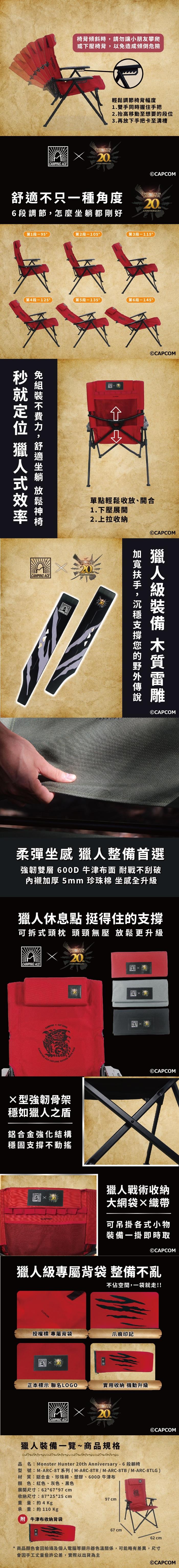 CAMPING ACE野樂 周邊 Capcom 《魔物獵人》20週年 6段躺椅