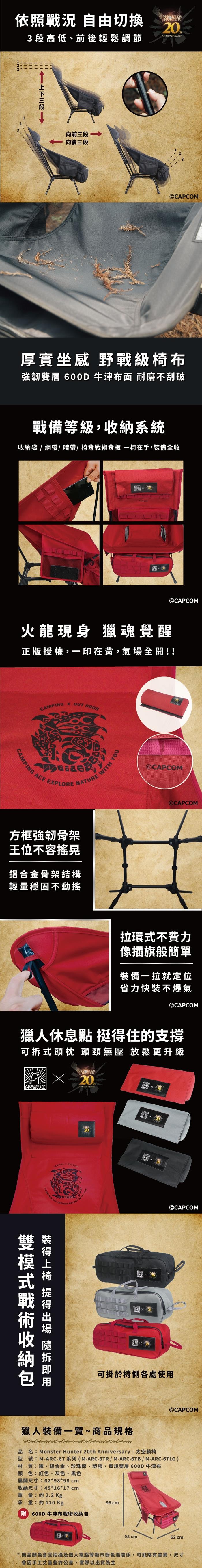 CAMPING ACE野樂 周邊 Capcom 《魔物獵人》20週年 太空躺椅