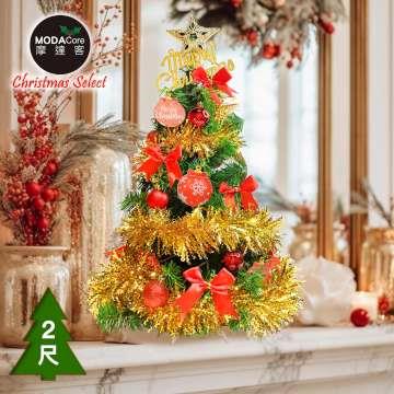 摩達客-台灣製2尺(60cm)精緻裝飾綠色聖誕樹+豐盛木質彩繪紅球金彩系飾品組/不含燈/本島免運費/歐美外銷人氣款