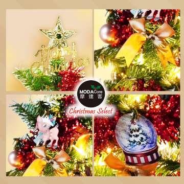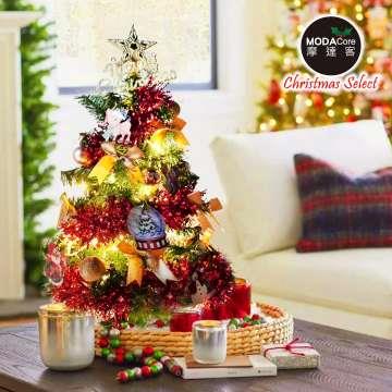 摩達客-台灣製2尺(60cm)精緻型裝飾綠色聖誕樹+童話彩繪木牌水晶球紅金系列飾品組+50燈LED燈串暖白光-USB電池盒兩用充電/本島免運費/歐美外銷款