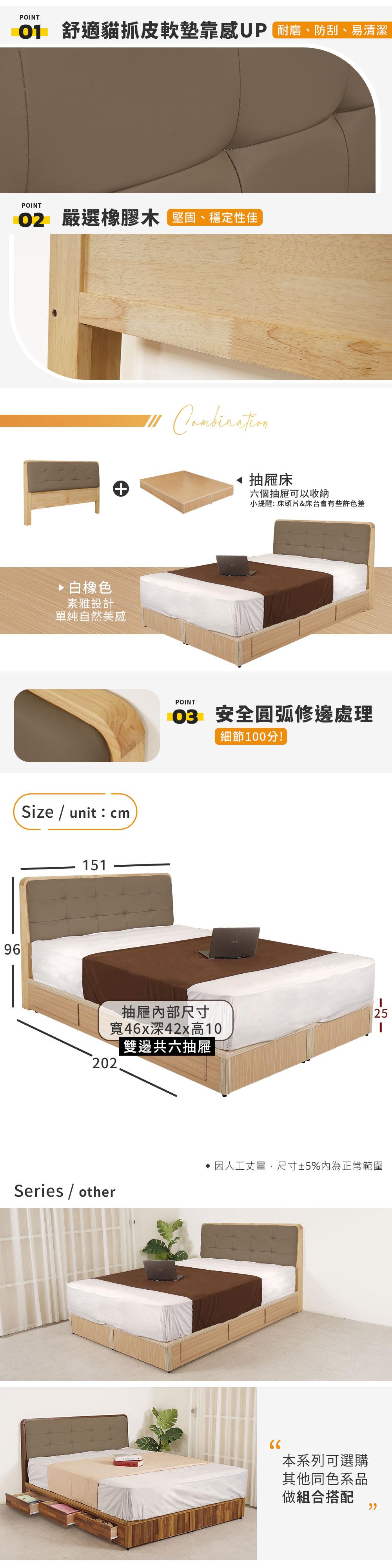 整組配件:5尺床頭片x1+六抽床台x1(不含床墊)