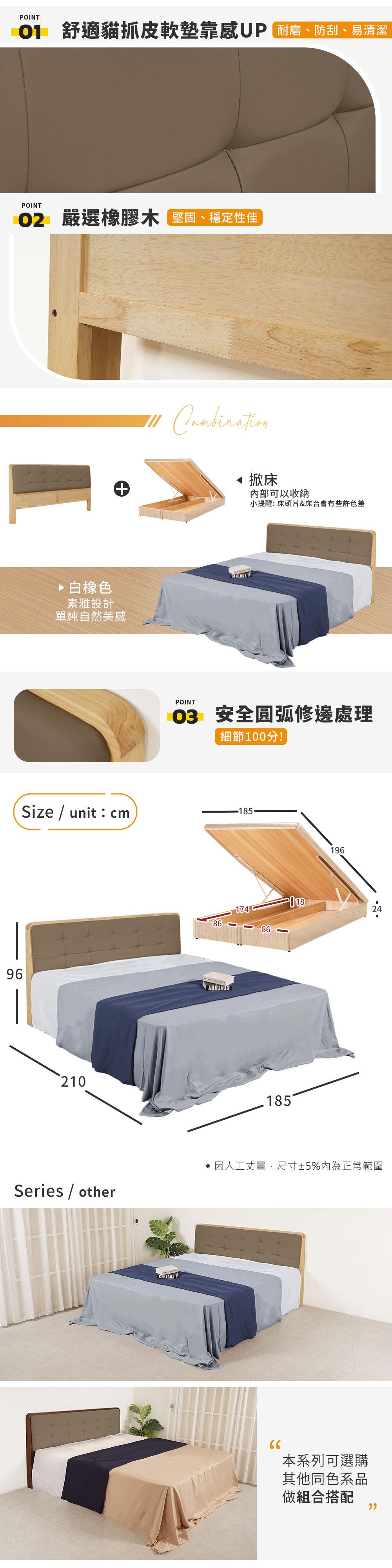整組配件:6尺床頭片x1+6尺掀床台x1(不含床墊)