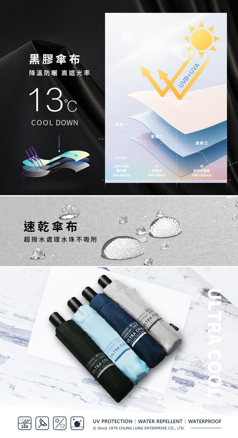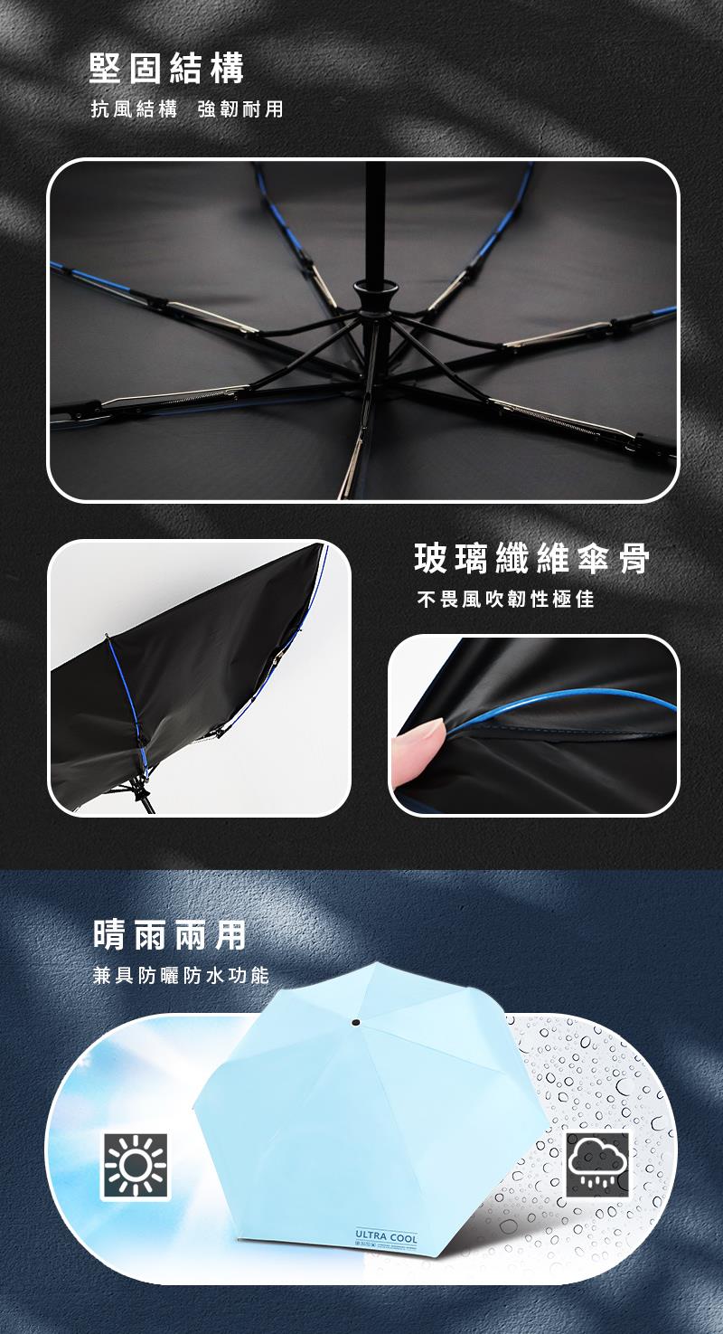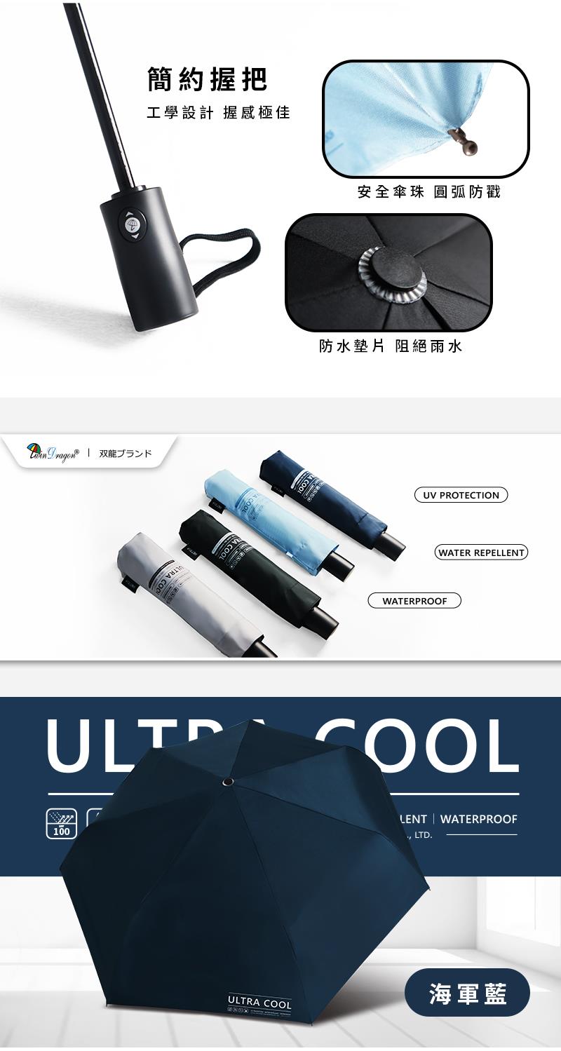 【雙龍牌】ULTRA COOL 降溫黑膠自動開收傘 (防風防曬抗UV雨傘陽傘摺疊B6290NJ1)
