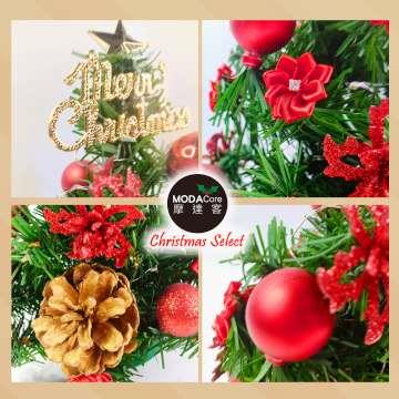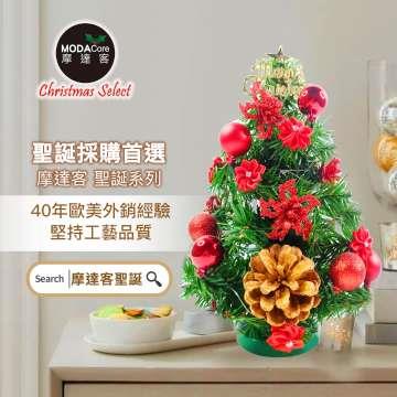 摩達客-台灣製1尺30cm精緻綠色聖誕樹+聖誕花松果雙紅系裝飾品組_免組裝_本島免運費