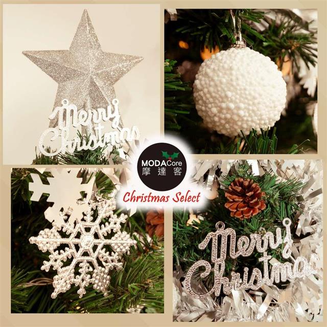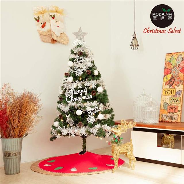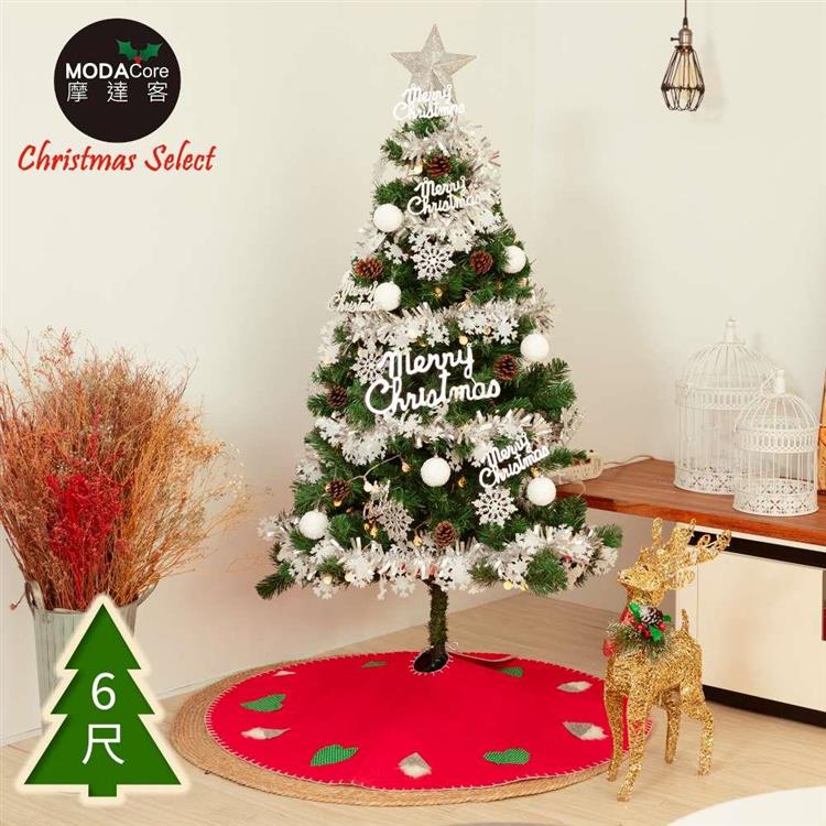 摩達客-台灣製6尺/6呎(180cm)豪華型裝飾綠色聖誕樹/銀白大雪花白果球系全套飾品組不含燈/本島免運費