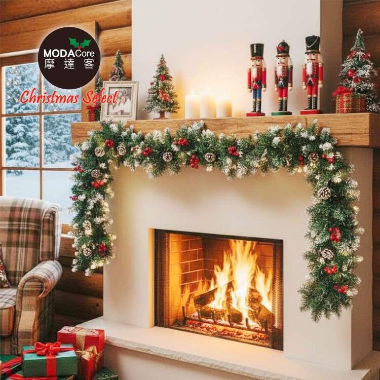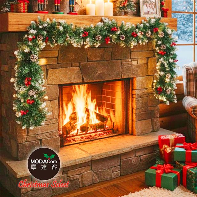 摩達客9尺/270cm刷白松果紅果裝飾樹藤條-免組裝/可彎曲調整_可掛門邊/窗邊/牆沿_本島免運費