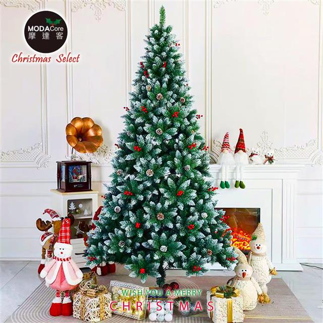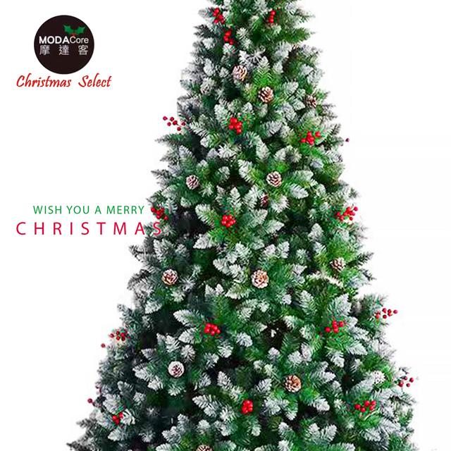 摩達客6尺180cm刷白雪頭紅果松果混合裝飾綠色聖誕樹_不含燈_本島免運費
