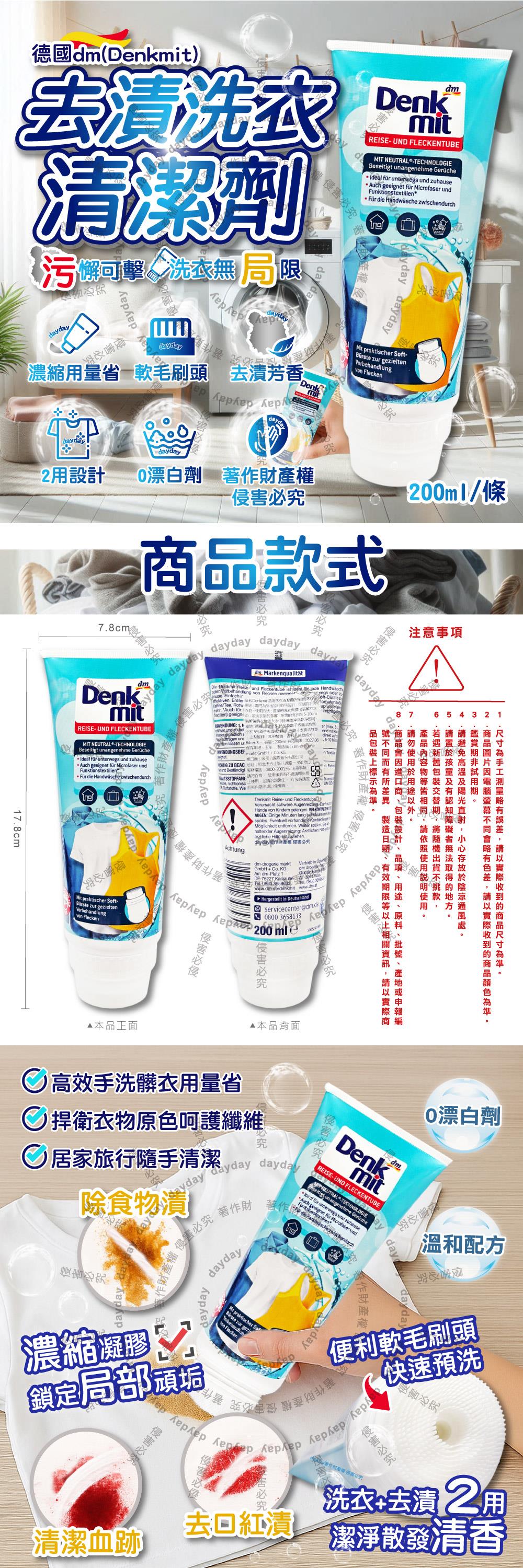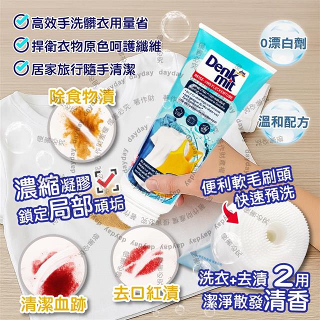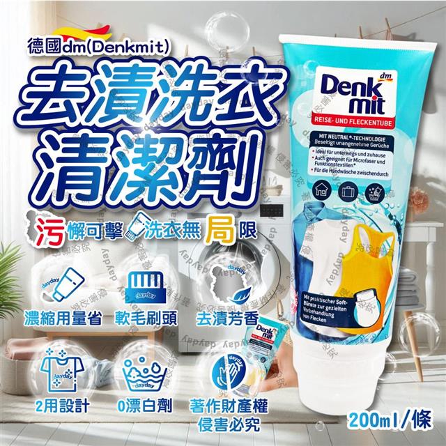 德國DM(Denkmit)-軟毛刷頭局部去漬芳香濃縮洗衣清潔劑200ml/條(織物重點除污垢凝膠/衣領袖口預潔液/貼身衣褲手洗精/旅行隨身衣物洗滌膏)