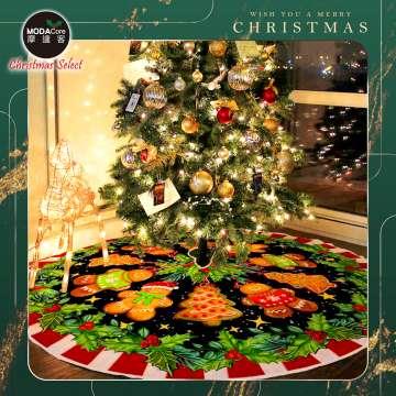 摩達客耶誕薑餅人017號短毛絨印花聖誕樹裙90cm_聖誕樹裝飾底墊