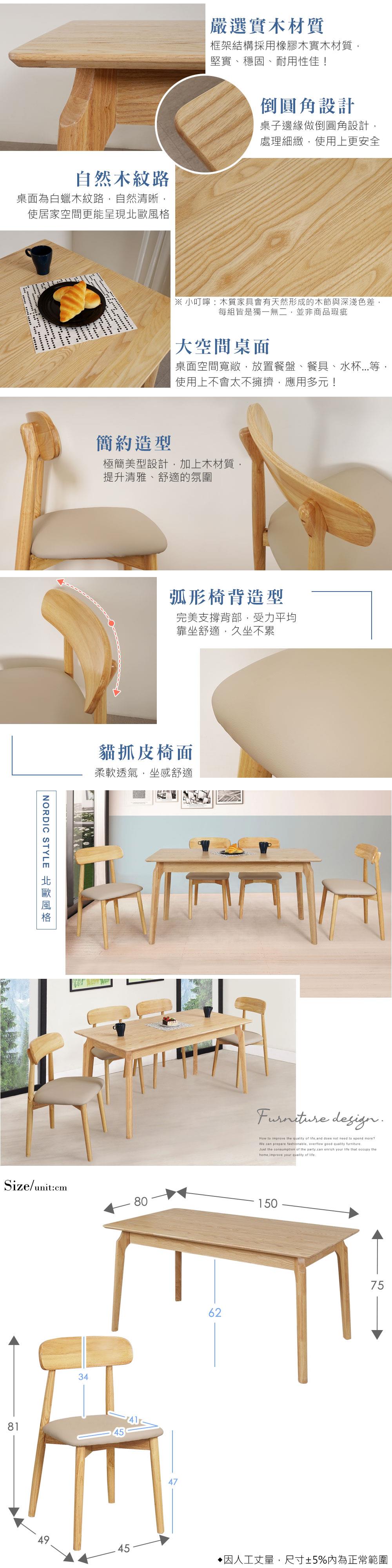 喜家居150cm實木餐桌椅組(一桌四椅)(2535-31)
