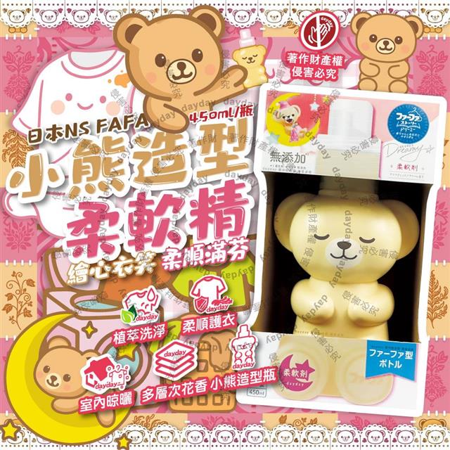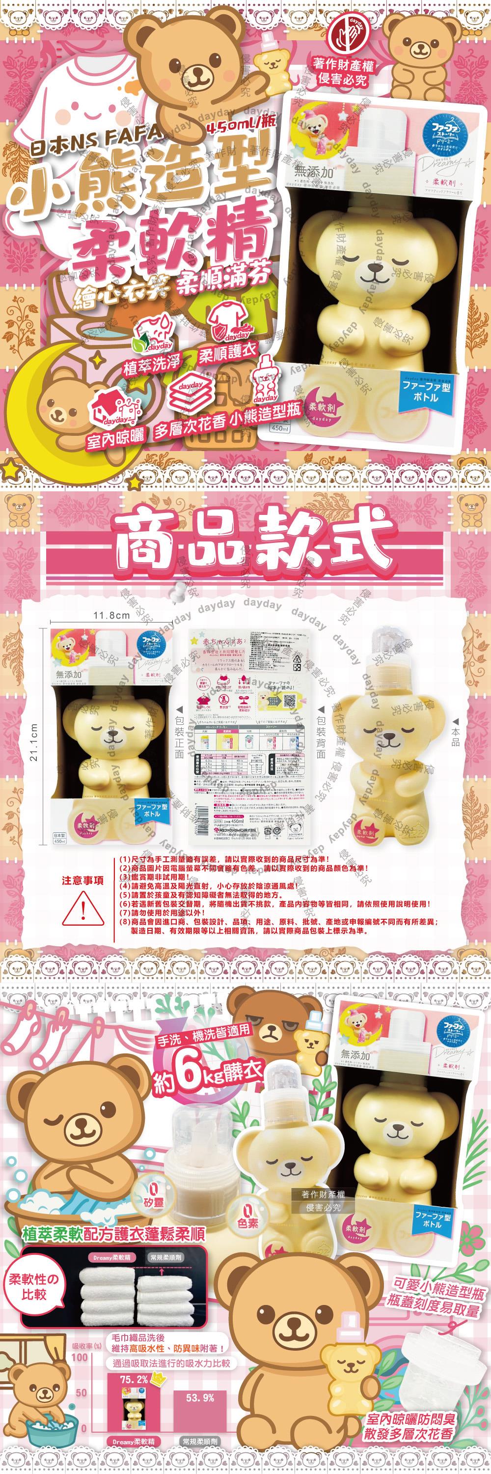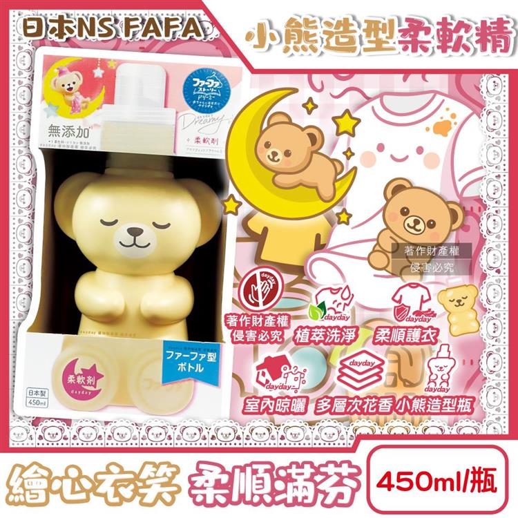 日本NS FAFA熊寶貝-繪本系列Dreamy小熊造型植萃香氛柔軟精450ml/瓶(花香消臭柔衣精/室內晾曬護衣精/毛巾織品洗滌柔順劑/貼身衣物手洗精)
