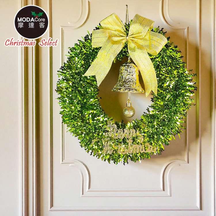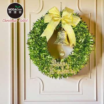 摩達客11吋時尚果綠系金蔥彎絲聖誕花圈_台灣工藝免組裝