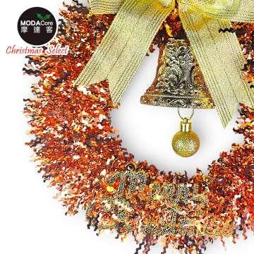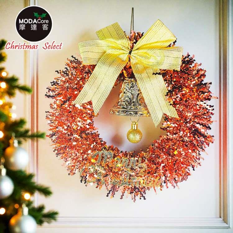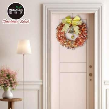 摩達客11吋優雅香檳玫金系金蔥彎絲聖誕花圈_台灣工藝免組裝