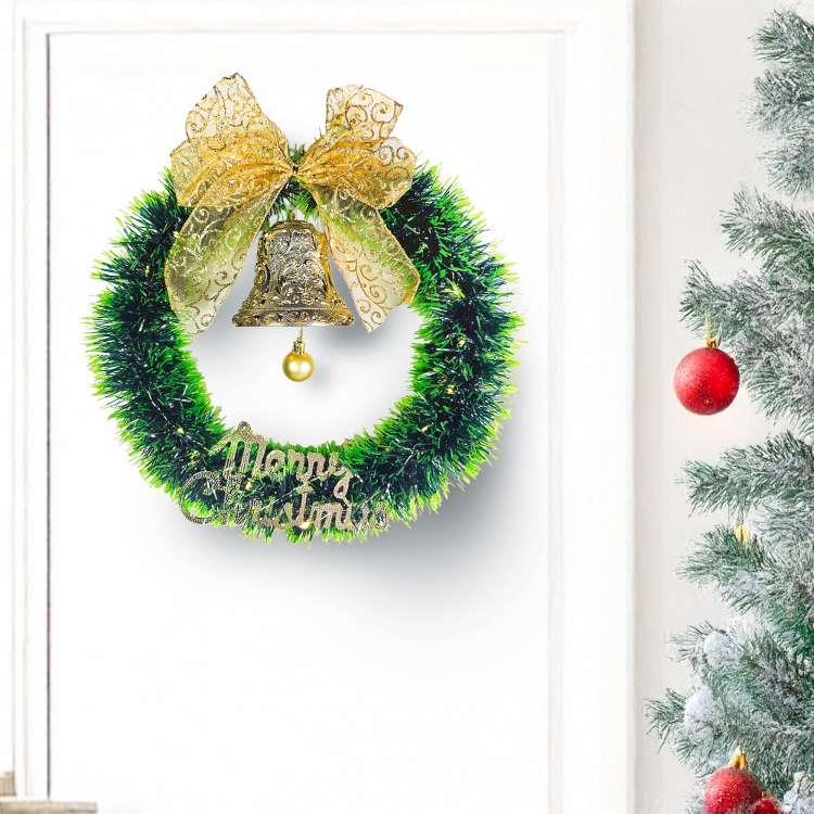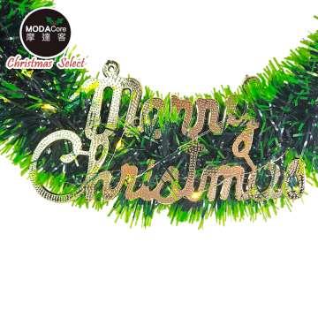 摩達客14吋森林雙綠漸層系金蔥彎絲聖誕花圈_台灣工藝免組裝