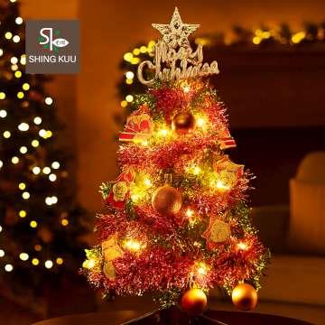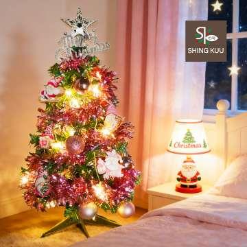 心可樂活-2尺60cm小美好套裝聖誕樹+2號夢幻粉紅聖誕老人彩繪木片飾品組+LED暖白光20燈雪花燈串