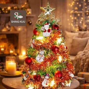 心可樂活-2尺60cm小美好套裝聖誕樹+7號幸運雪人紅系彩繪木片飾品組+LED暖白光20燈雪花燈串