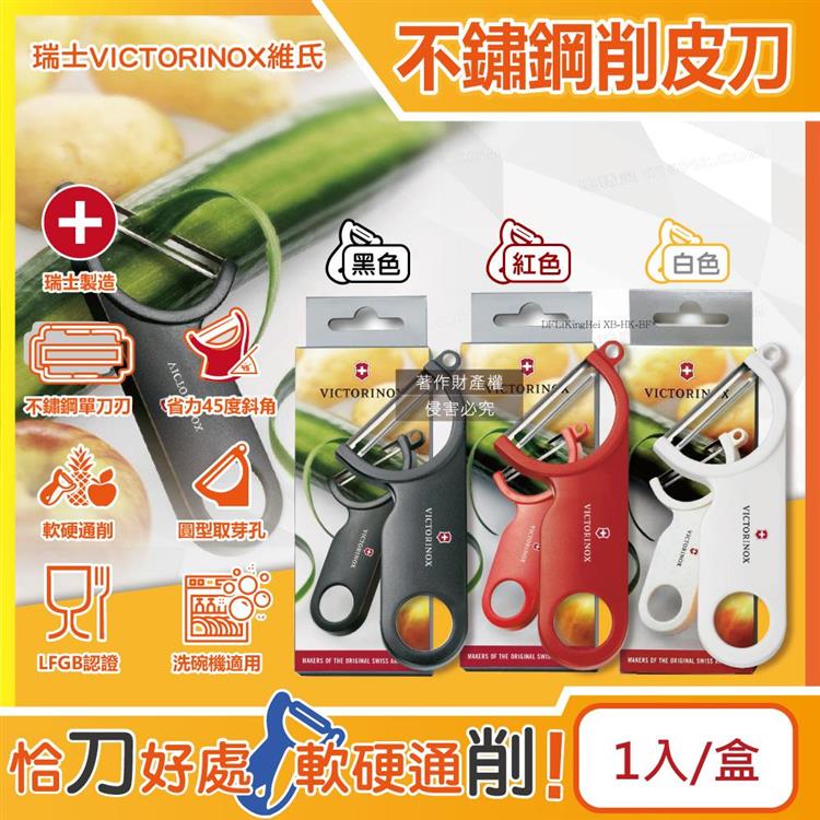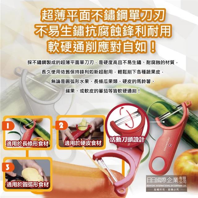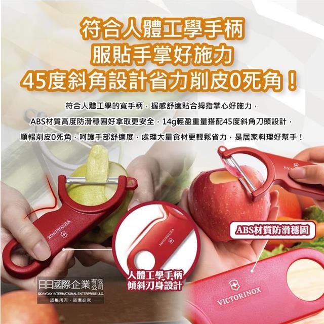 瑞士VICTORINOX維氏-45度省力斜角不鏽鋼平面單刀刃經典削皮刀1入/1盒(可放洗碗機清洗/廚房刀具刨刀/蔬菜瓜果去皮器/馬鈴薯削皮器/可懸掛收納)