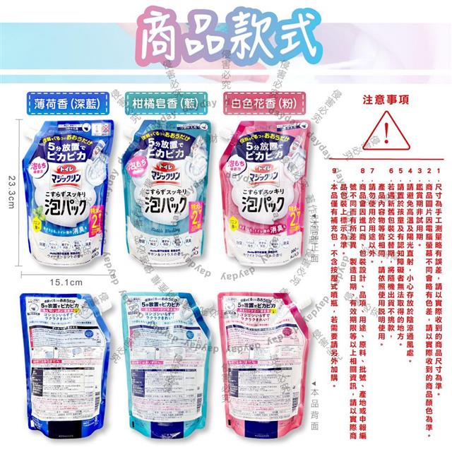●款式:柑橘皂香(藍)、白色花香(粉)、薄荷香(深藍)