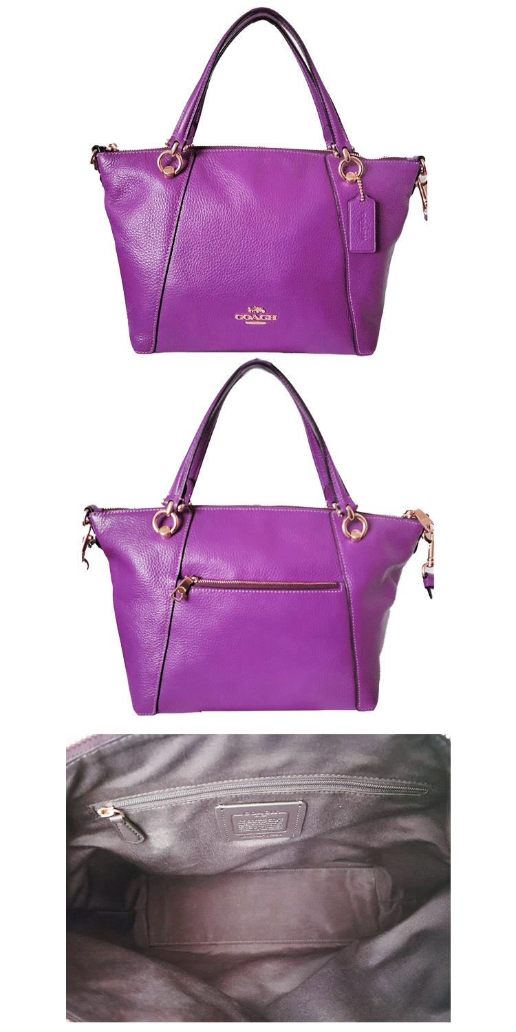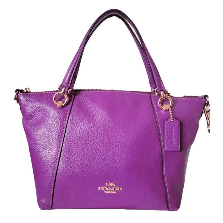 COACH 荔枝紋皮革側/斜背包-葡萄紫