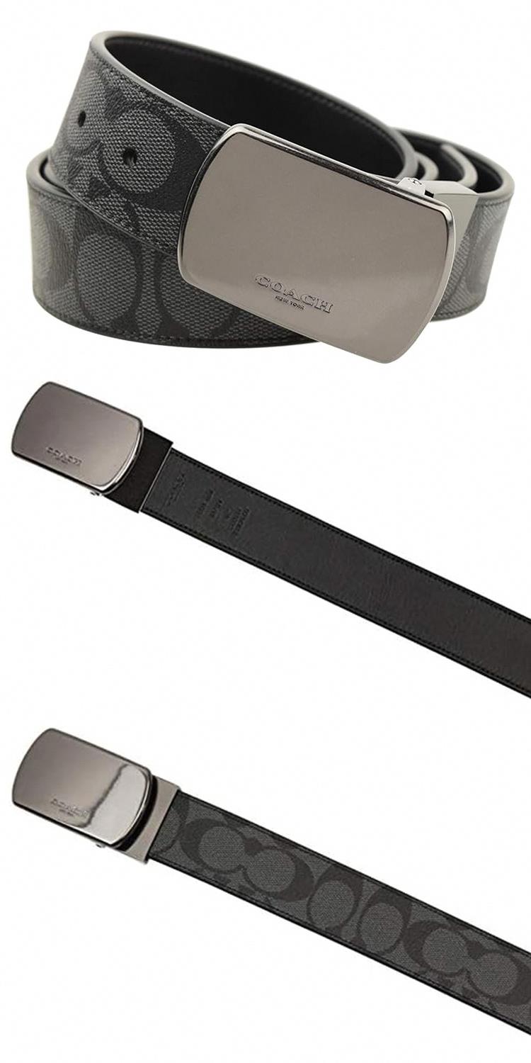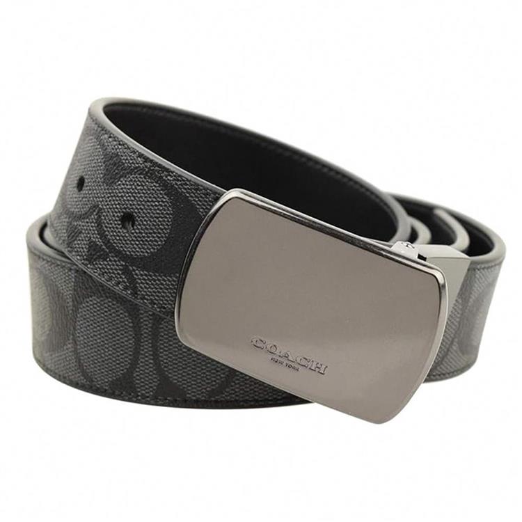 COACH PVC皮革雙面寬版皮帶-黑灰