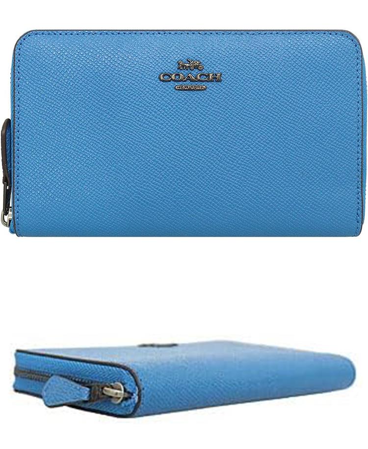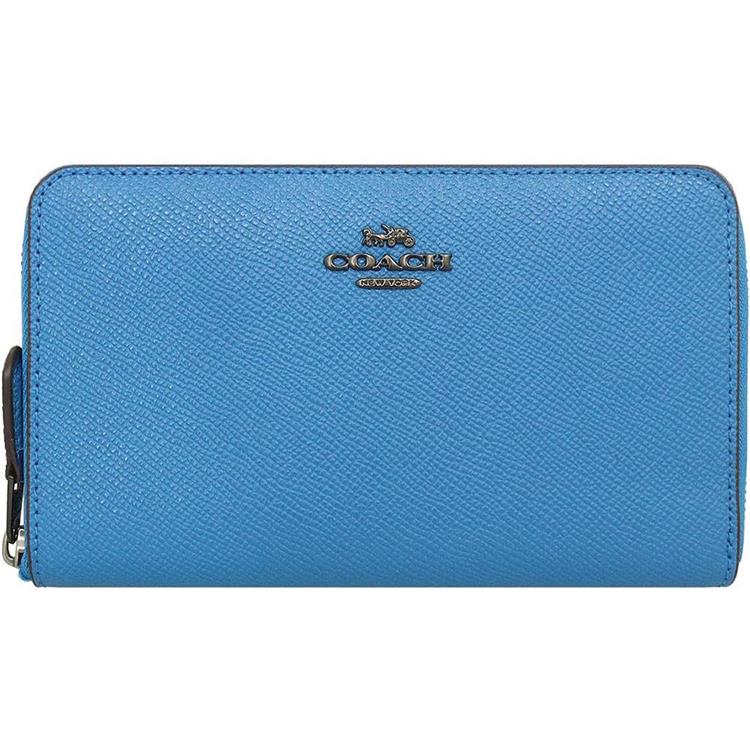 COACH 素面防刮皮革中夾-寶藍
