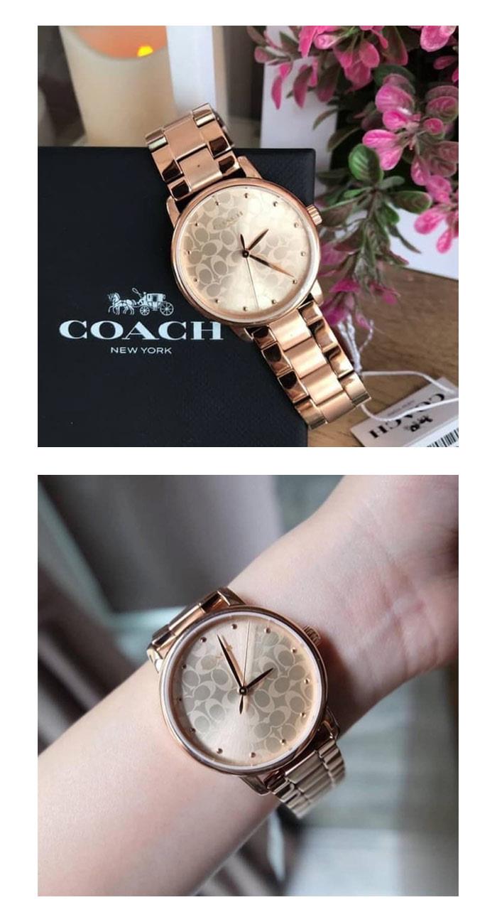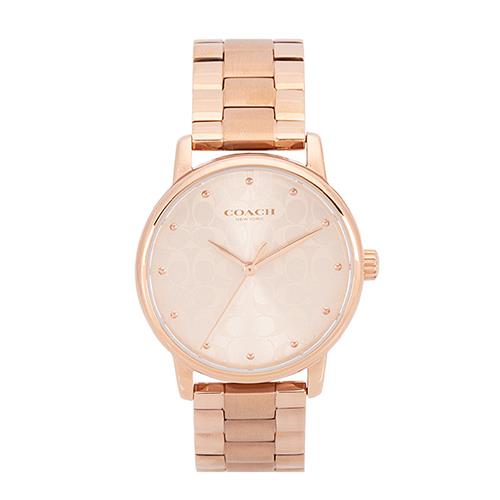 COACH 滿版logo不鏽鋼腕錶-玫瑰金