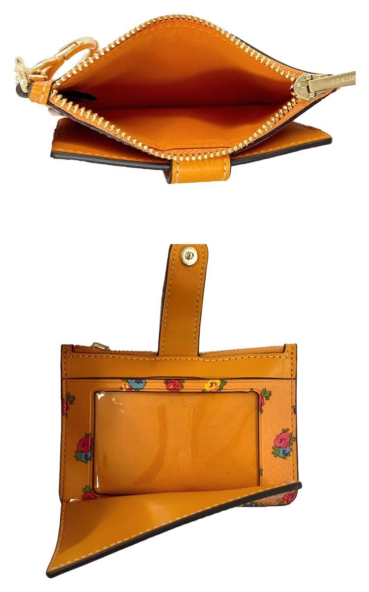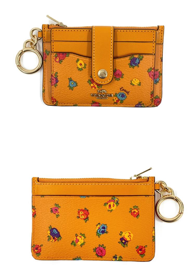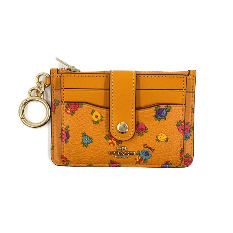 COACH 印花皮革零錢票卡夾-桔底花朵