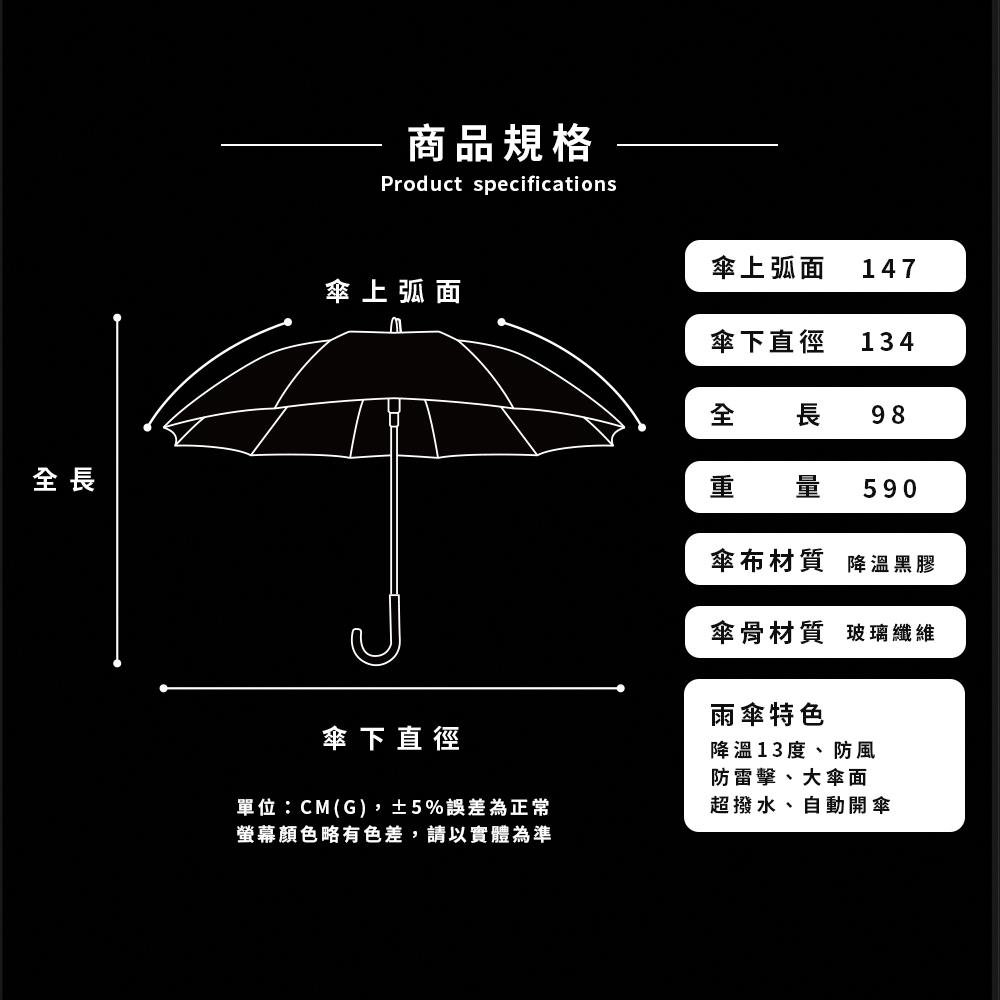 【雙龍牌】大王冷靜傘超大黑膠自動直傘((降溫防曬晴雨傘防風)A6306