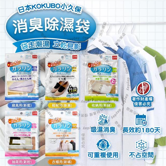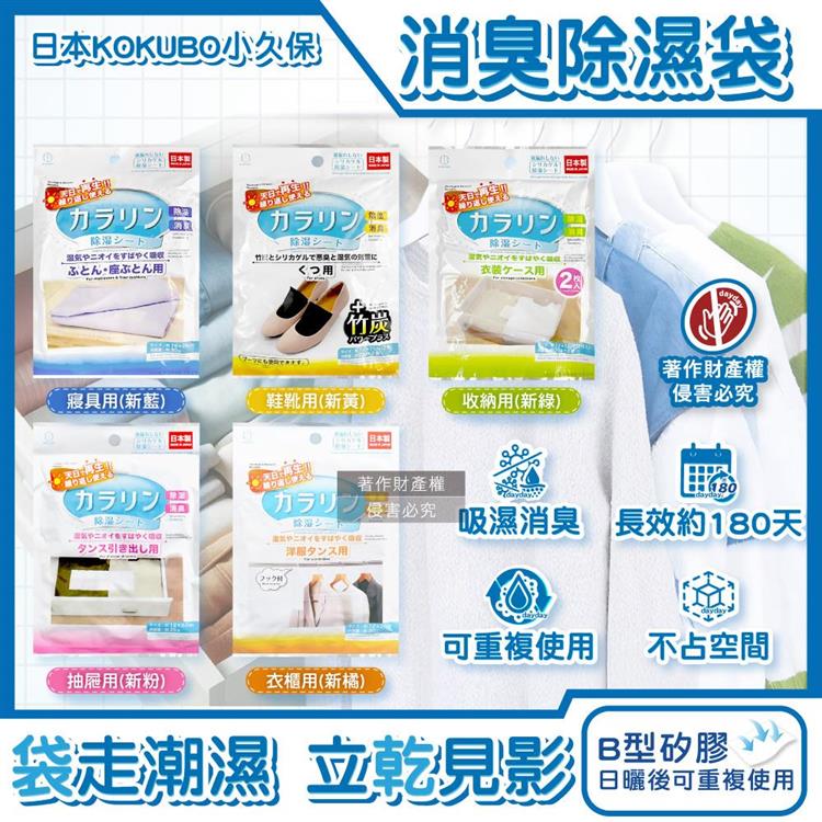 日本KOKUBO小久保-可重複使用居家空間消臭除濕袋1袋(衣櫥鞋櫃脫臭防潮乾燥劑/抽屜收納箱吸濕顆粒/坐墊棉被寢具靜置除異味/長效約180天)