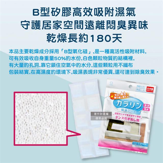 ●B型矽膠高效吸附濕氣,守護居家空間遠離悶臭異味,乾燥長約180天!