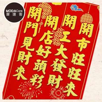 摩達客◉春節開運招財◉彩金開市旺旺來絨布6K燙金豎輝春門貼春聯(單片入)