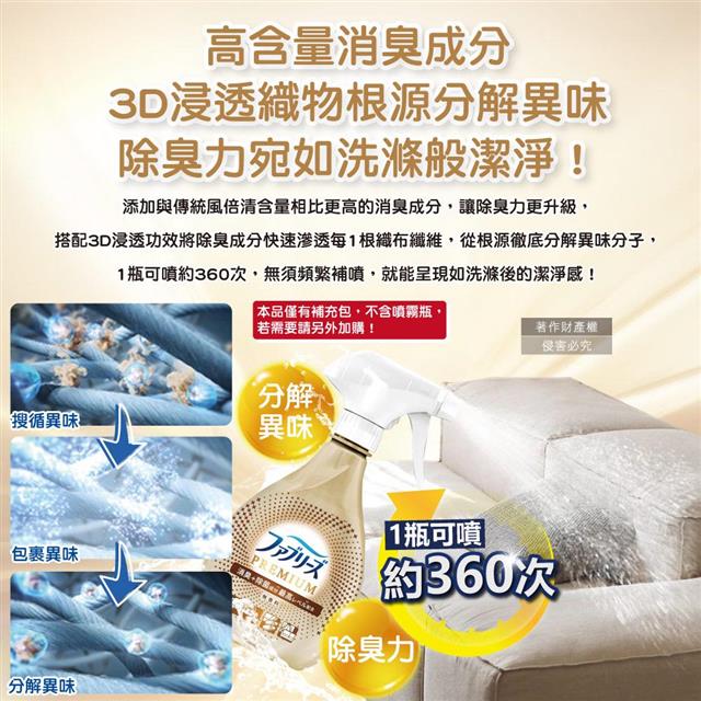●品名:高消臭力3D浸透織品除臭噴霧補充包