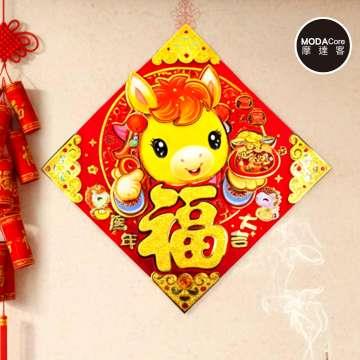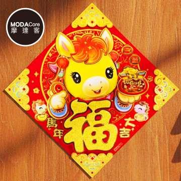 摩達客◉春節開運招財◉毛毛氈Q馬年大吉立體福字斗方-單片春聯