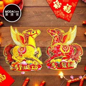 摩達客◉春節開運招財◉紅金刺繡馬到成功馬上發財(大)門聯對聯春聯兩片組