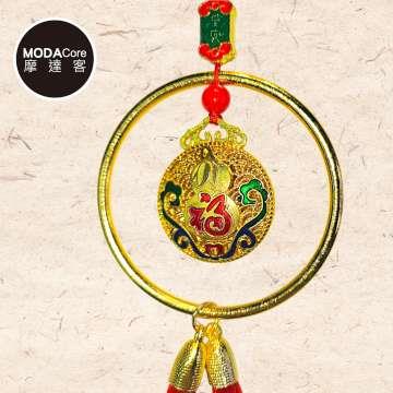 摩達客◉春節開運招財◉彩繪福字招財貓金圈流蘇吊飾_兩入組