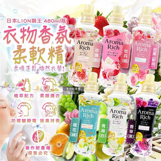 ●品名:Aroma Rich長效除臭蓬鬆防褶皺衣物香氛柔軟精