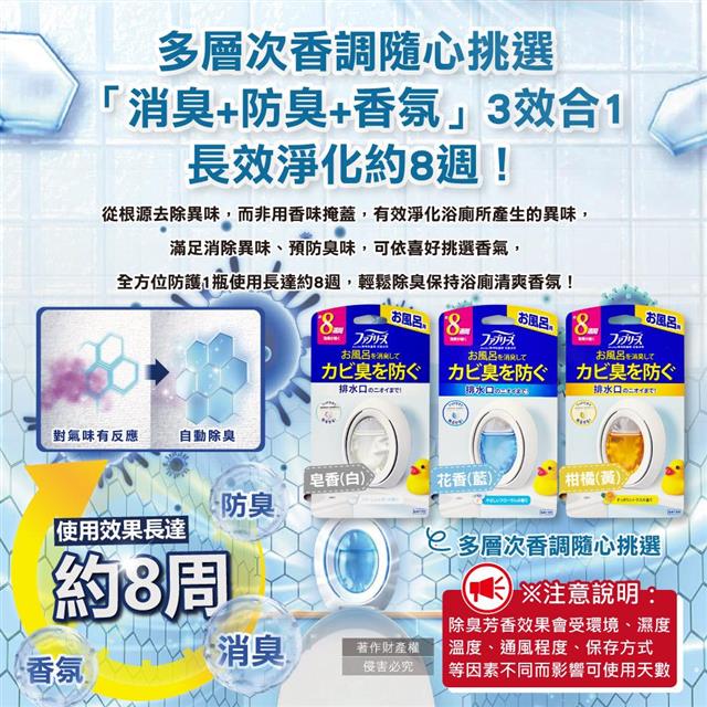 ●品名:淨味持香約8週浴室廁所消臭芳香劑