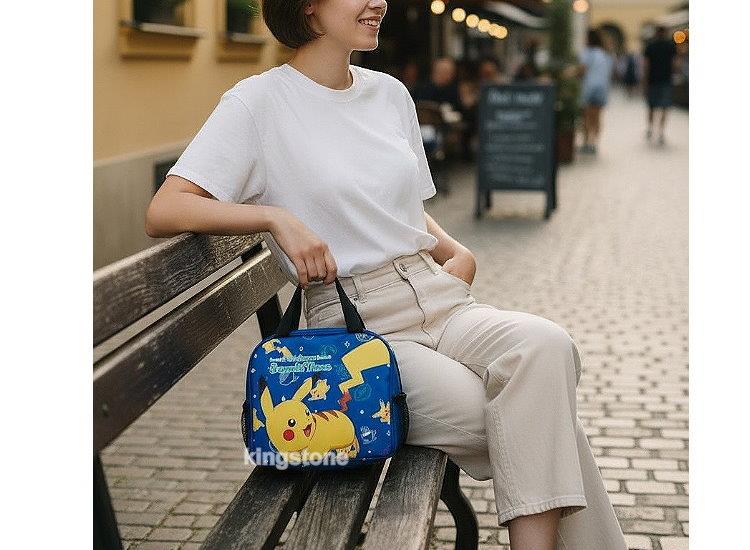 歡樂夢皮卡丘尼龍手提袋,手提袋印有精靈寶可夢圖案,可愛的皮卡丘探出頭來與您Say Hello,手提袋拉鍊式開口設計讓您東西不外露,快讓可愛皮卡丘帶給您趣味又歡樂的生活.