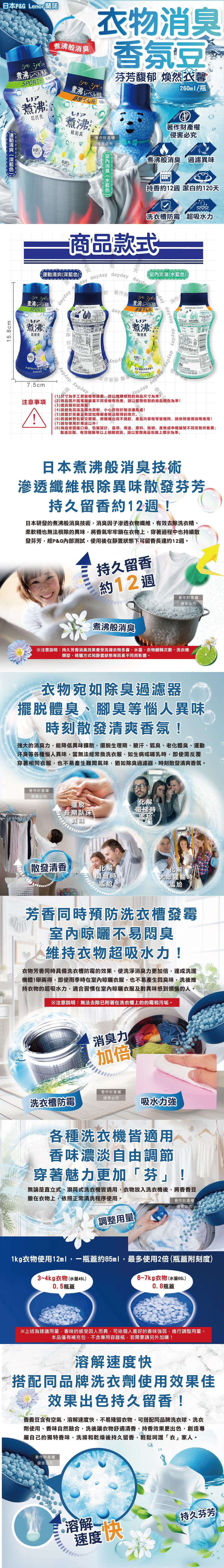 ●日本煮沸般消臭技術,衣物潔白不易泛黃約120天,持久留香約12週!